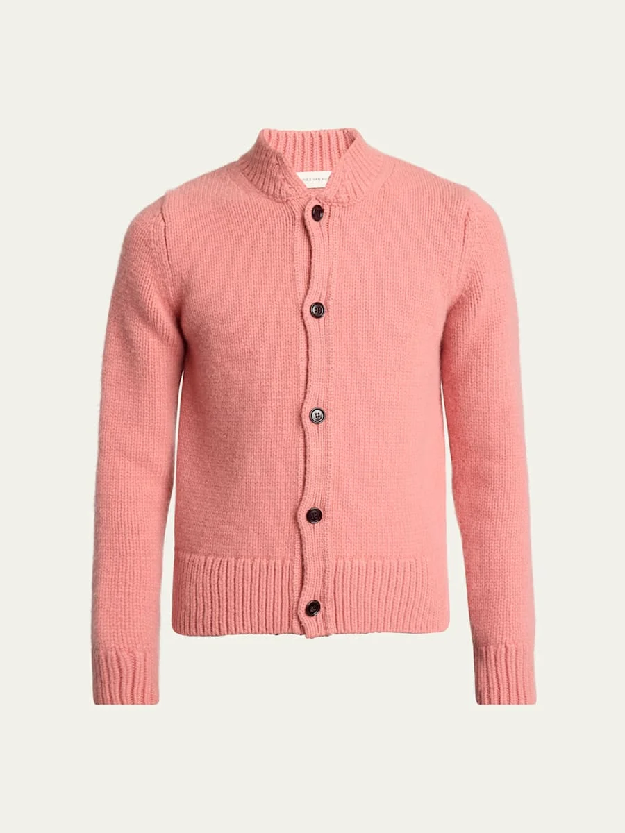 Dries Van Noten cardigan crafted from a durable wool and cashmere knit blend Ribbed mock neck Button front Long sleeves Ribbed cuffs and hem Wool/elastane/cashmere Imported
