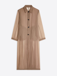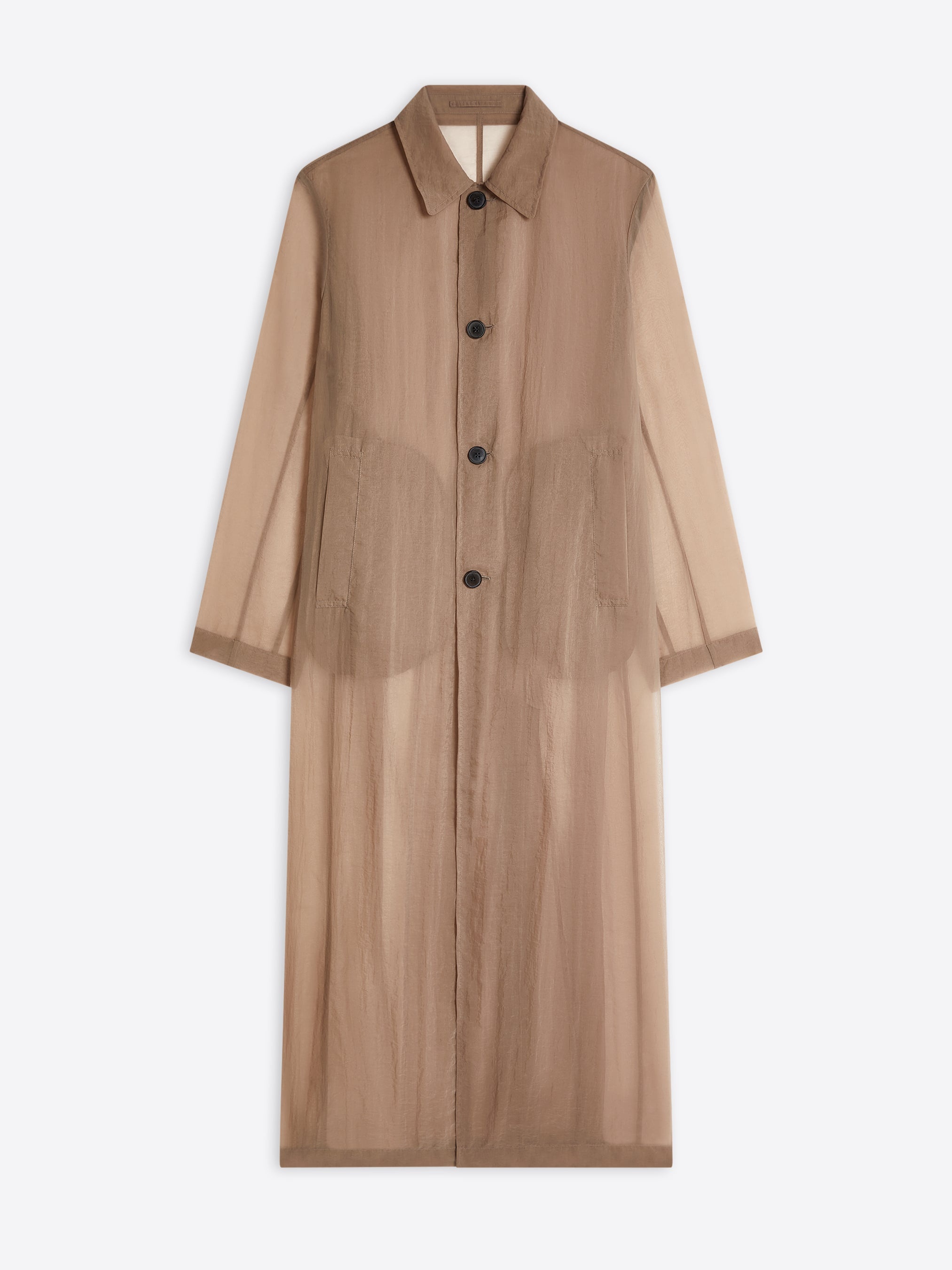 Loose fit mac in transparent nylon. DETAILS - 100% Nylon. - Loose fit. Single-breasted. - Side slit pockets. Unlined. Single vent. Front button closure. - Ref: 251-020213-1329 SIZE AND FIT Model is 188 cm / 74 inches and wears size M.