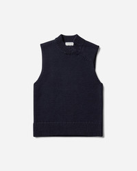 Dries Van Noten Sleeveless Sweater Navy Dries Van Noten Men's Autumn Winter Collection: When the elegance of another era catches up to the current moment, various allusions resonate to striking effect. Capturing how contrasts turn complementary, and how artistic influences can alter masculine archetypes. Regular fit sleeveless mock neck sweater in merino wool and cashmere. - 90% Merino Wool, 10% Cashmere - Regular Fit - Mock Neck - Ribbed Hem - Style Code: 252-021245-2710 509