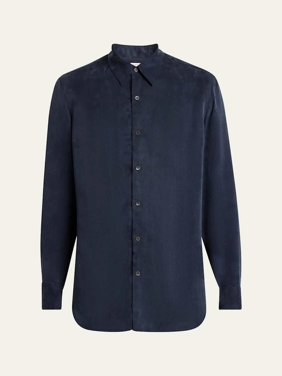 Men's Washed Cupro Point Collar Button-Down Shirt