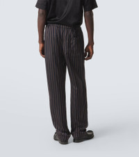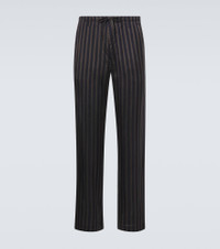 Juxtaposing a poetic sensibility with intelligent tailoring, Dries Van Noten creates styles that are always unique. These pants are cut to a straight-leg silhouette with an elasticated, mid-rise waistband and side slit pockets. Product Details - Material: 100% cupro - Care instructions: machine wash at 30 degrees - Made in Tunisia - Color: blue - Designer color name: Navy - Closure: zipper fly, button fastening - Pockets: side slit pockets, back pocket - Elasticated drawstring waist - Item number: P01135360 Size & Fit - True to size - Elasticated waist - Adjustable at the waist - Non-stretchy fabric - Height of model is 192cm-75.5" and wears a size 50