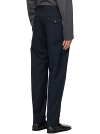 Cotton- and wool-blend twill trousers. · Belt loops · Four-pocket styling · Zip fly · Creased legs · Button tabs at back waistband Supplier color: Navy 56% cotton, 44% wool. Made in Morocco 252358M191052