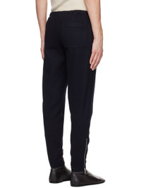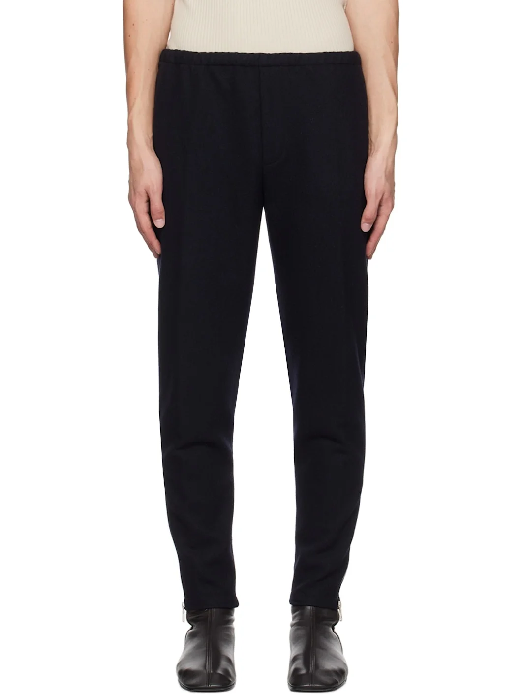 Wool-blend serge trousers. · Concealed drawstring at elasticized waistband · Three-pocket styling · Mock-fly · Creased legs · Zip vent at outseams Supplier color: Navy 90% wool, 10% polyamide. Made in Romania 242358M191018