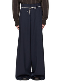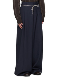 Wool canvas trousers. · Belt loops · Self-tie drawstring at waistband · Four-pocket styling · Zip fly · Loop at front waistband · Pleats at waist · Creased legs Supplier color: Navy 100% wool. Made in Hungary 252358M191045