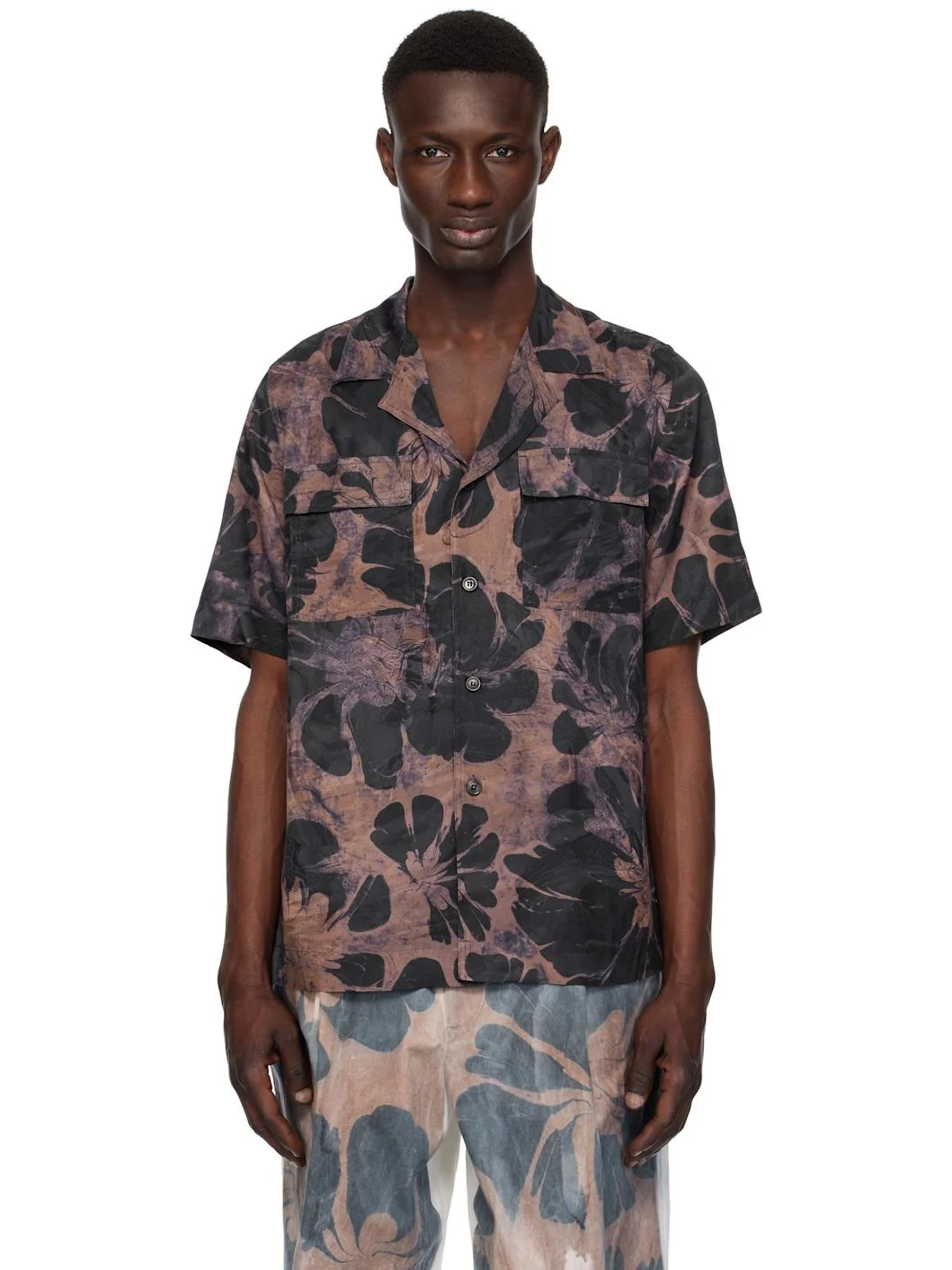 Viscose sateen shirt. Jacquard floral pattern throughout. · Open spread collar · Button closure · Flap pockets · Vent at side seams · Twin pleats at yoke Supplier color: Dessin c 100% viscose. Made in Tunisia 251358M192078