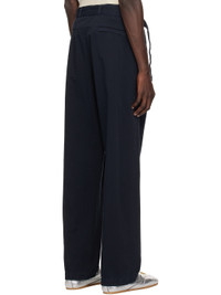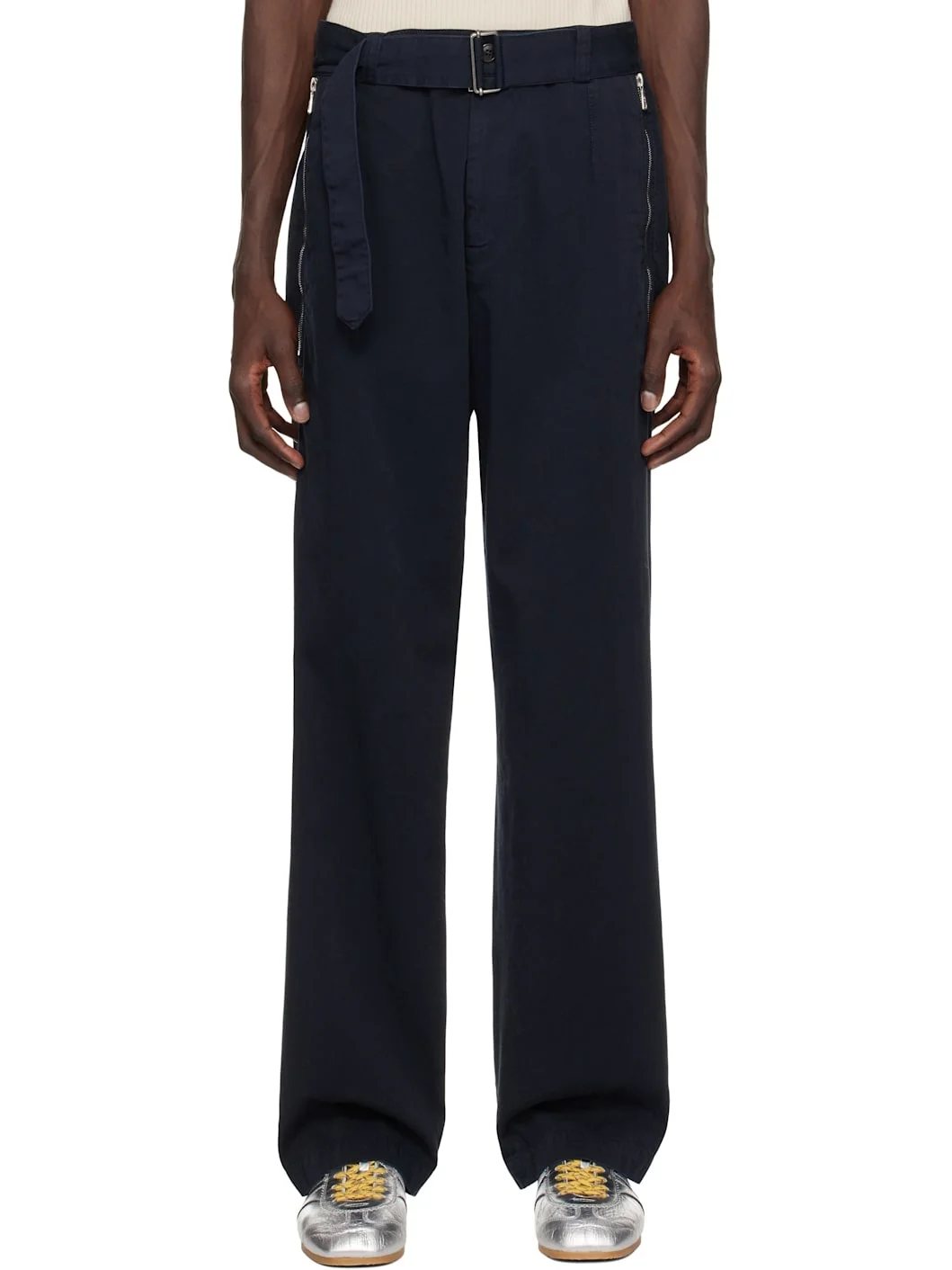 Straight-leg crinkled cotton twill trousers. · Garment-dyed · Belt loops and detachable cinch belt · Four-pocket styling · Zip-fly · Darts at front and back waist Supplier color: Navy 100% cotton. Made in Romania 251358M191003
