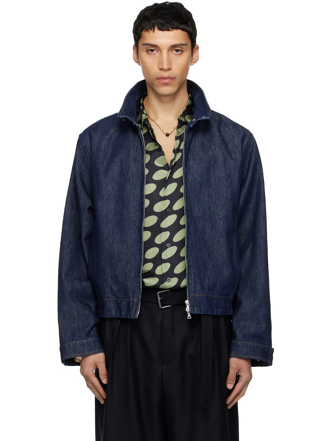 Non-stretch denim jacket. · Button-down spread collar · Two-way zip closure · Patch pockets at waist · Partially elasticized hem · Darts at sleeves · Adjustable press-stud cuffs · Welt pocket at interior · Unlined · Silver-tone hardware · Contrast stitching in tan Supplier color: Indigo 100% cotton. Made in Tunisia 261358M177006