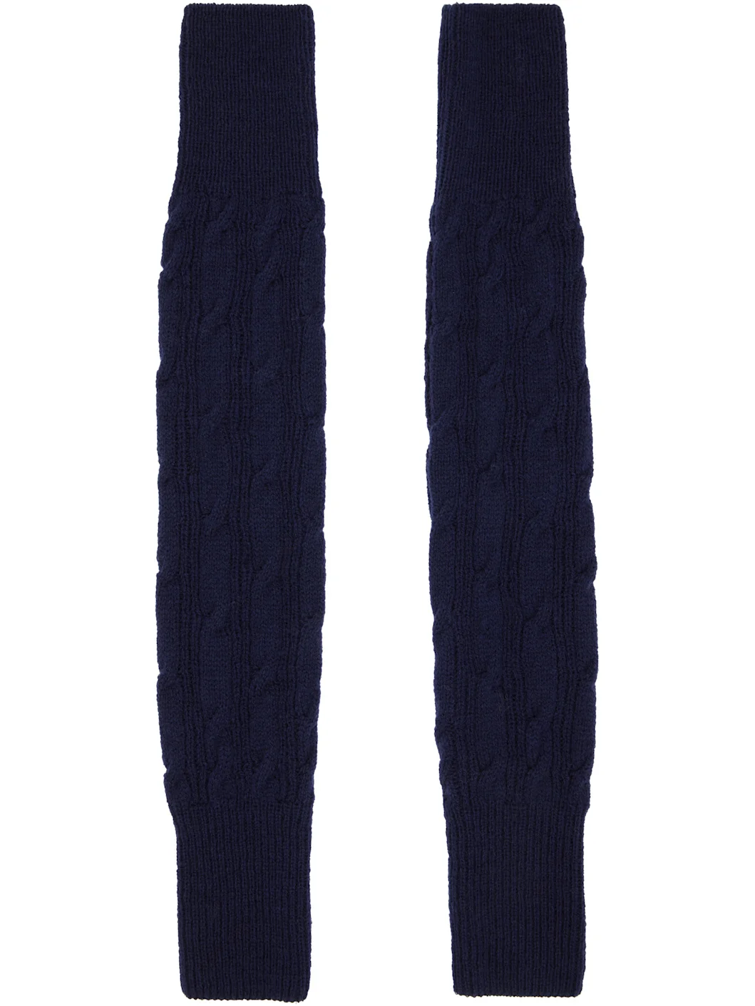 Pair of cable-knit wool arm warmers. Rib-knit ends. Supplier color: Navy 100% wool. Made in Belgium 252358M135001