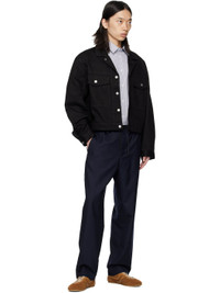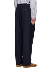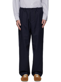 Plain-woven wool trousers. · Drawstring and belt loops at elasticized waistband · Three-pocket styling · Zip fly Supplier color: Navy 100% wool. Made in Tunisia 252358M191024