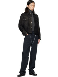 Cotton canvas trousers. · Belt loops · Four-pocket styling · Exposed zip fly · Zip vent at cuffs Supplier color: Navy 100% cotton. Made in Romania 252358M191032