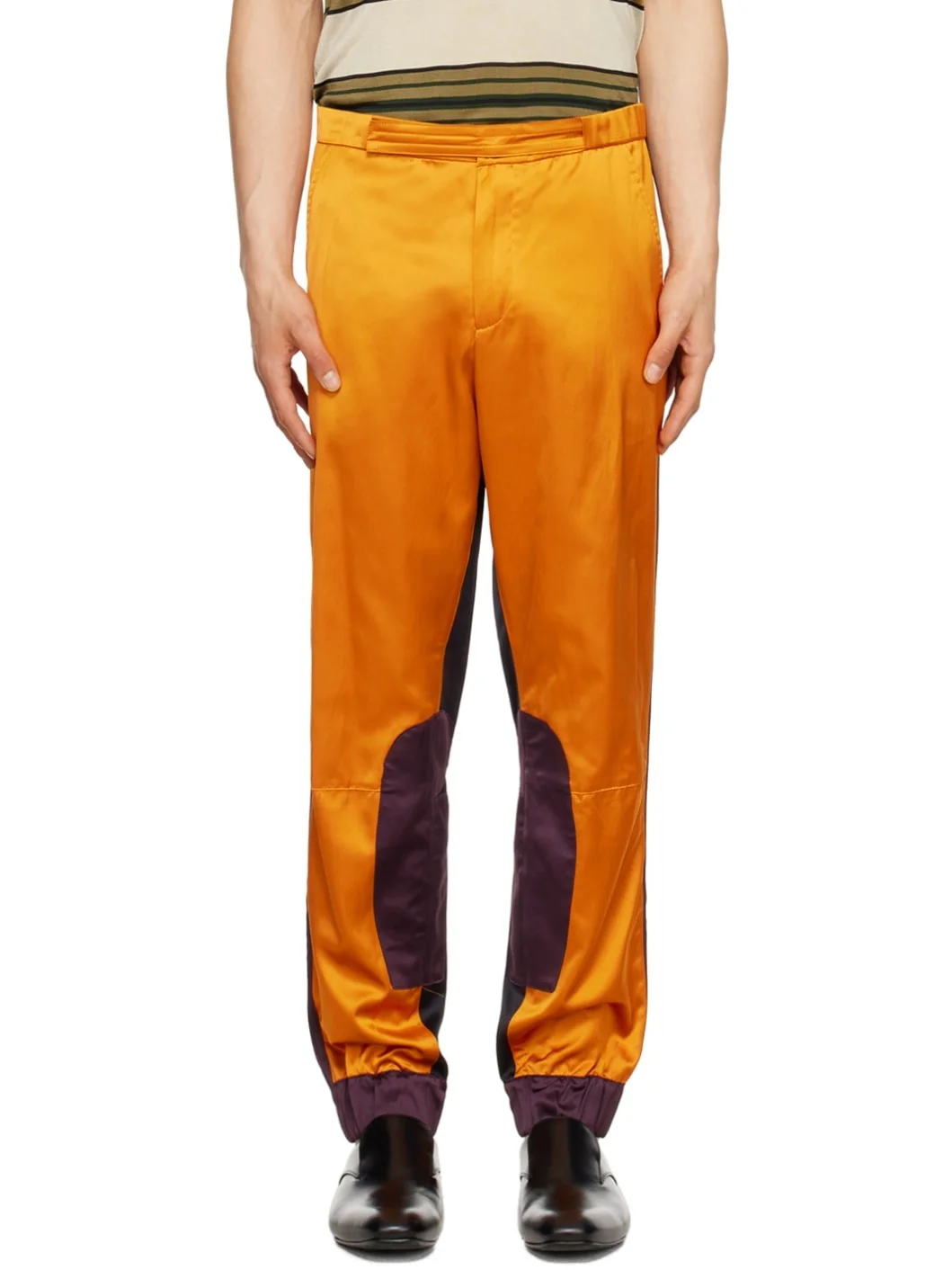 Viscose-blend satin trousers. · Paneled construction · Adjustable velcro tab at partially elasticized waistband · Two-pocket styling · Zip-fly · Elasticized cuffs Supplier color: Orange