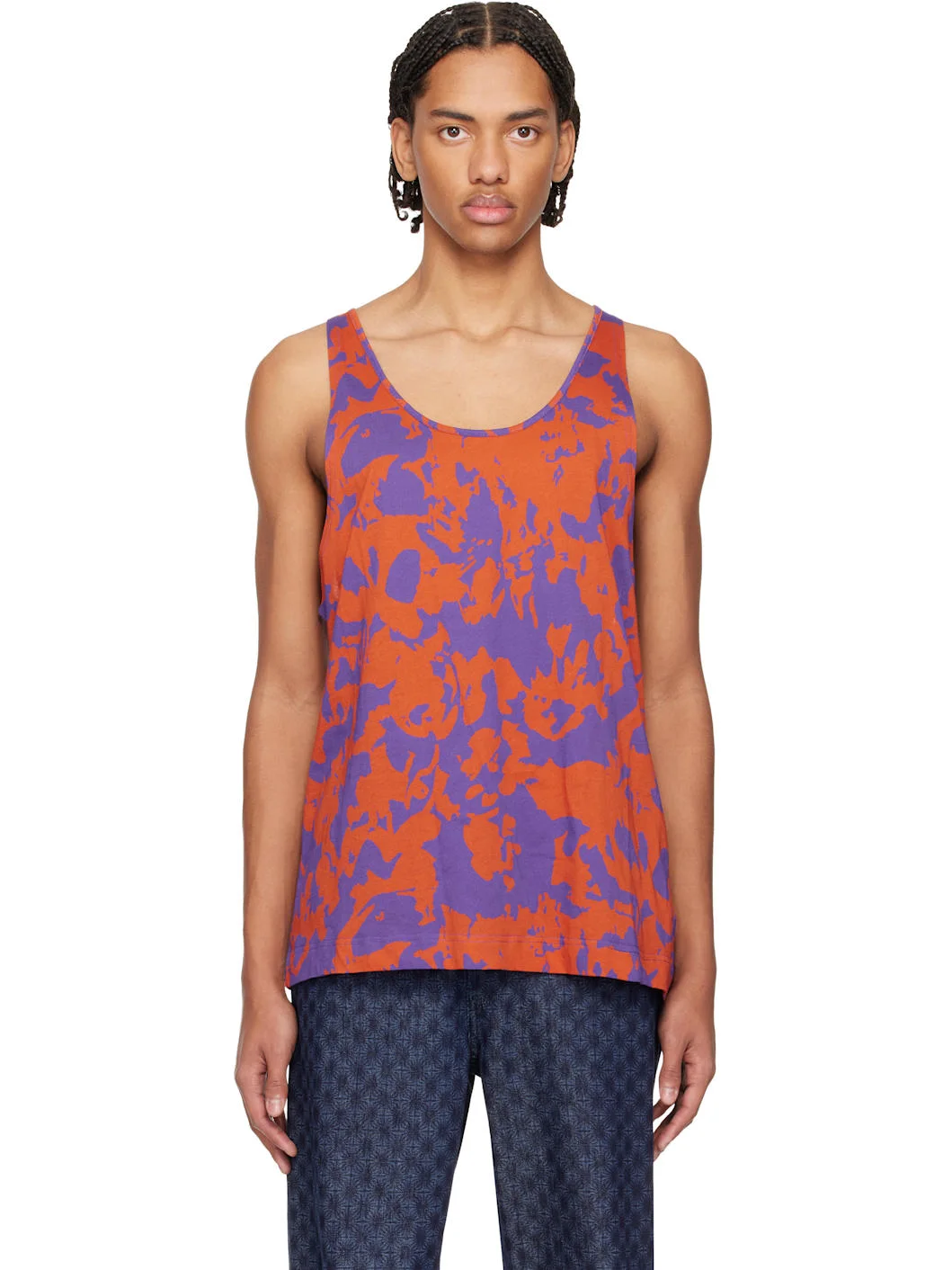 Cotton jersey tank top. · Graphic pattern printed throughout · Scoop neck Supplier color: Orange 100% cotton. Made in Portugal 261358M214012