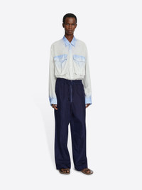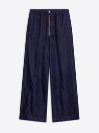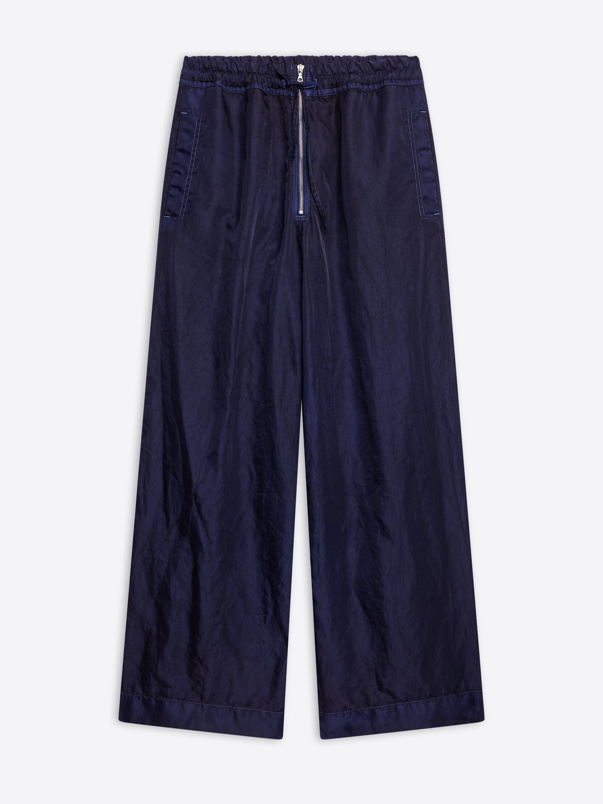 Full leg loose fit pants with zip, in water repellent overdyed nylon. DETAILS - 100% Nylon. - Garment dyed. Water repellent - Loose fit. Mid rise. Full leg. Side slit pockets and back patch pockets. Drawstring waistband. Front zip closure. - Ref: 241-020924-8204 SIZE AND FIT Model is 188 cm / 74 inches and wears size L.