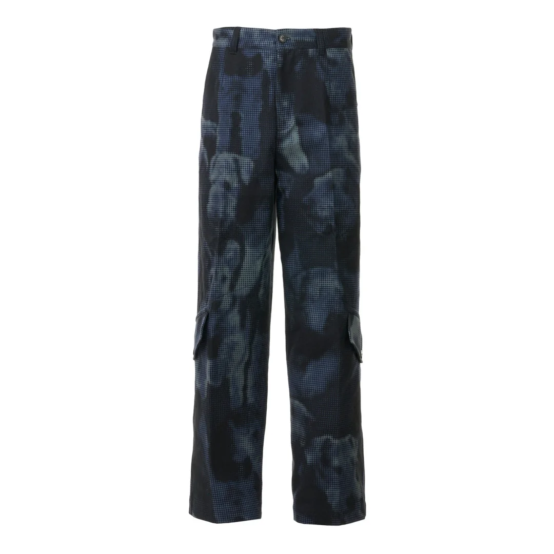 300041896NVY-48 / A4242-020945/9082/509 - Premium cotton drill construction - Overdyed finish for rich color depth - Digital camouflage print - Straight leg silhouette - Front zip closure with button - Side seam pockets - Regular fit through hip and thigh - Unlined for comfortable wear Dries Van Noten Overdyed Printed Cotton Drill Pants deliver avant-garde Belgian design with sophisticated camouflage artistry. Crafted from premium cotton drill fabric featuring an overdyed process that creates rich depth and texture in navy and black tones. The architectural silhouette and signature Van Noten print work showcase the designer's mastery of pattern and contemporary tailoring.