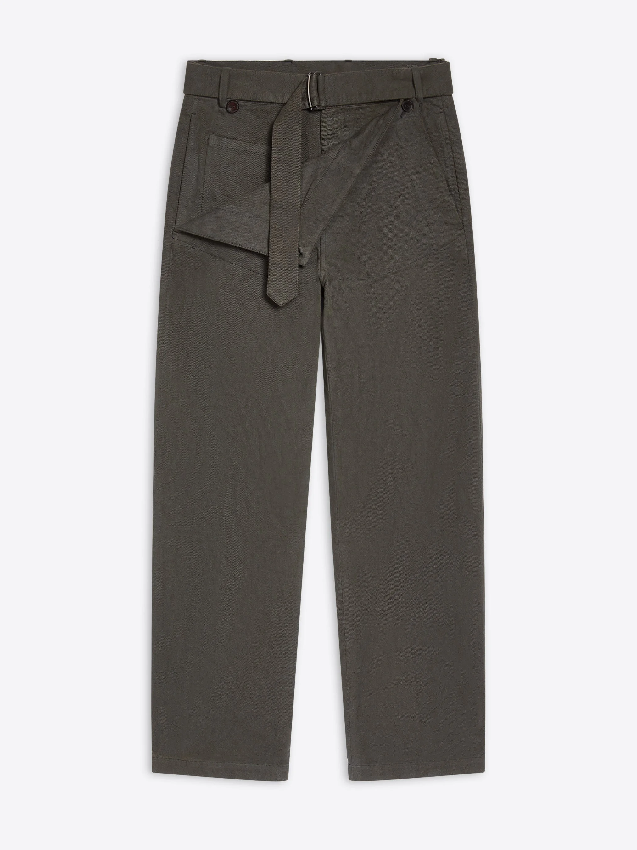 Regular fit straight-leg sailor pants with buttonable front flap, in overdyed cotton twill. DETAILS - 100% Cotton. - Buttonable front flap. - Regular fit. Mid rise. Straight leg. Front patch pockets and back welt pockets. Belted. Front button closure. - Ref: 252-020985-2043 SIZE AND FIT Model is 189 cm / 74.5 inches and wears size 46.