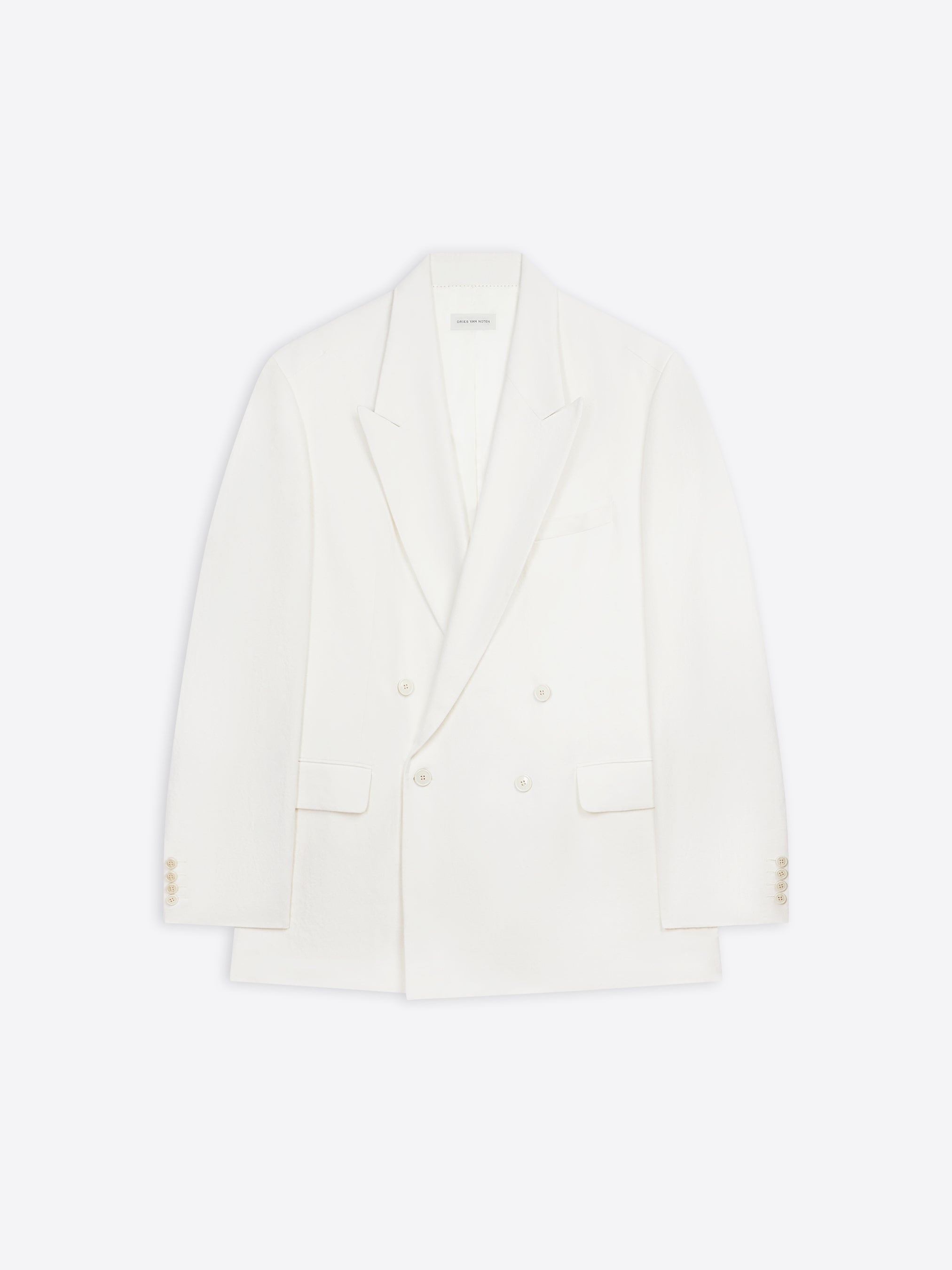 Oversized double breasted blazer with peak lapel. DETAILS - 49% Linen, 28% Wool, 15% Silk, 8% Cashmere. Lining: 50% Viscose, 50% Cupro. - Loose fit. Peak lapel. Double-breasted. Front flap pockets and welt pocket at chest. Buttoned cuffs. Front button closure. - Ref: 251-020409-1041 SIZE AND FIT Model is 188 cm / 74 inches and wears size L.