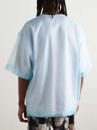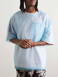 This design from Dries Van Noten puts an unconventional spin on the everyday T-shirt. Cut for an oversized fit, it’s made from cotton-blend jersey and layered with crisp organza. Style yours with printed shorts or cargos. Size & Fit - Intended to be oversized; we recommend sizing down if you prefer a closer fit - Mid-weight, slightly stretchy fabric with sheer outer layer - Model is shown wearing a M - Model measures: chest 38"/ 96cm, height 6'0"/ 183cm Details & Care - Light-blue organza, light-pink cotton-blend jersey - 50% cotton, 50% polyester - Dry clean
