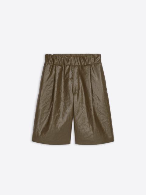 Loose fit wide bermuda shorts in padded high shine satin weave polyester, with pleats and elasticated waistband. DETAILS - 100% Polyester. Lining: 100% Cotton. - Loose fit. Pleated. Padded. Side flap pockets and back patch pocket. Elasticated waistband. - Ref: 251-020952-1502 SIZE AND FIT Model is 188 cm / 74 inches and wears size M.