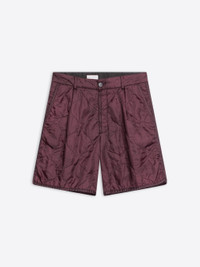 Pleated padded shorts in overdyed nylon. DETAILS - 69% Nylon, 31% Polyester. - Water repellent. Garment dyed. Quilted. - Loose fit. Mid rise. Side slit pockets. Front zip and button closure. - Ref: 241-020955-8502 SIZE AND FIT Model is 188 cm / 74 inches and wears size M.