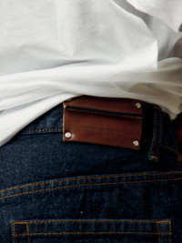 Contrasting stitch cotton denim. Features belt loops, a 5-pocket construction and concealed button-fly closure. 100% Cotton Model is 6'0 wearing a size 32