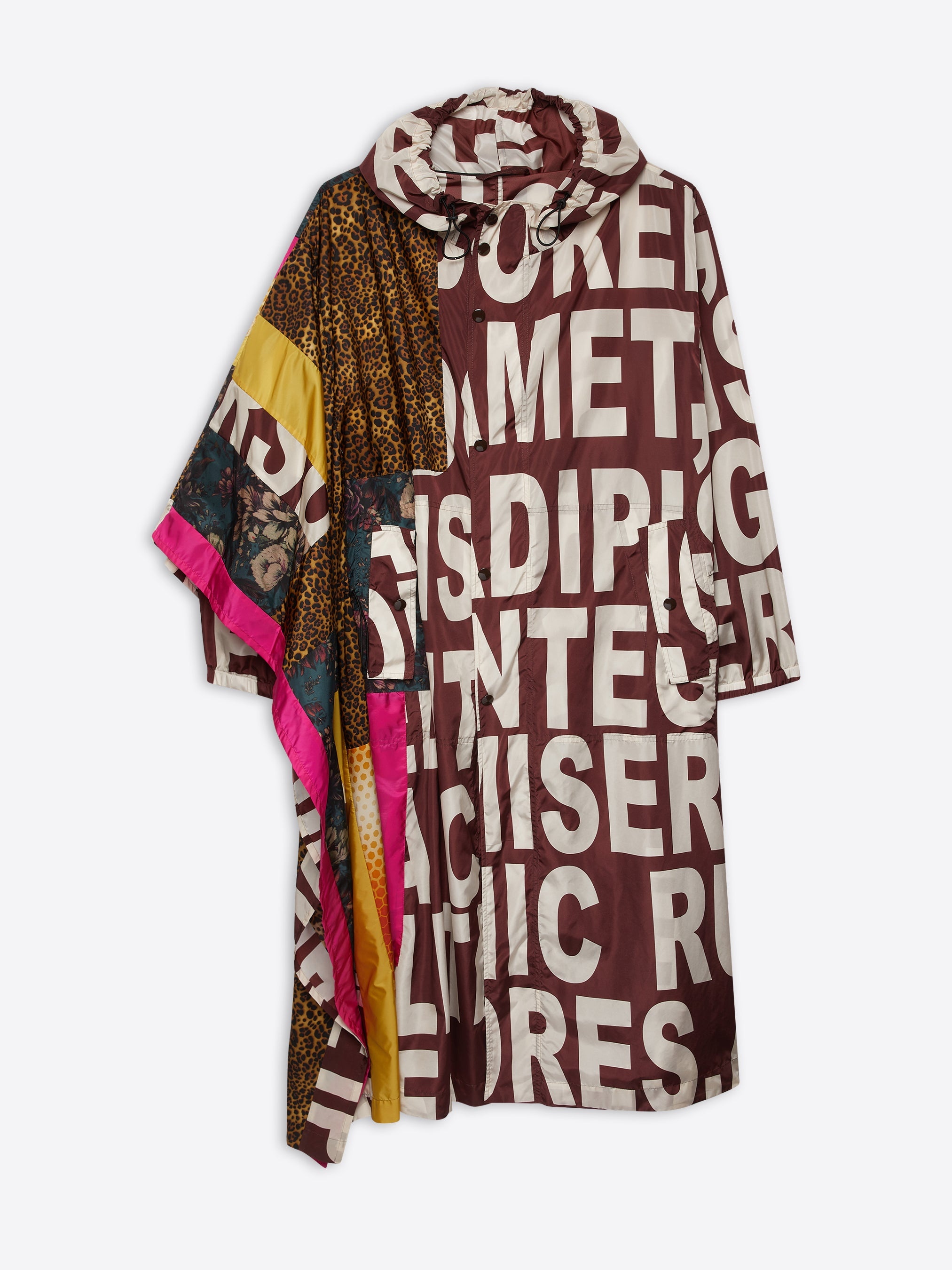 Oversized parka cape with patched 'Lettering' print. DETAILS - 100% Polyamide. - Patched 'Lettering' print. Waterrepellent. - Oversized fit. Drawstring hood. Front patch pockets. Front button closure. - Ref: 231-020531-6096 SIZE AND FIT Model is 188 cm / 74 inches and wears size L.