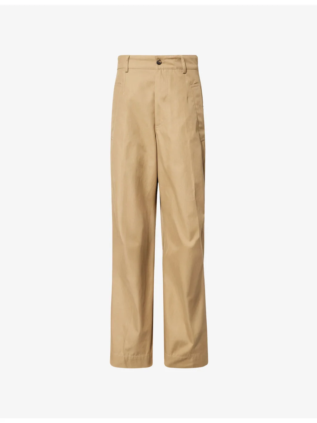 PRODUCT DETAILS - Dries Van Noten cotton trousers - 100% cotton - Button and zip-fly fastening - Regular fit, mid-rise, belt loops, two welt pockets at sides, two flap pockets at back, pleated at knee - Machine wash at 30°C - Made in Romania - True to size - Size UK 32: rise 14.5in / 37cm, inside leg 31in / 79cm, leg opening 18in / 46cm - Model is 6ft 1in/1.85m and wears a size UK 32 - Midweight, non-stretch Ref: R04581063