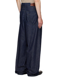 Non-stretch denim jeans. · Belt loops · Five-pocket styling · Button fly · Pleats at waist · Pinched leather logo patch at back waistband · Logo-engraved silver-tone hardware Supplier color: Indigo 100% cotton. Made in Tunisia 252358M186022