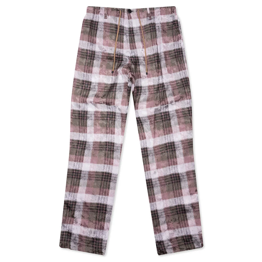 Dries Van Noten presents casual sophistication with the Penny Long 2028 M.W. Pants. Crafted from velvety viscose fabric, the pant showcases a plaid pattern that is adorned with jacquard floral accents for standout details. Cut to have a relaxed, straight-leg fit, it is designed to have an effortless silhouette. Other details include an elastic drawstring waistband and side pockets. - 100% Viscose - Relaxed fit - Straight leg - Jacquard floral accents - Elastic waistband - Adjustable drawstring - Side pockets - Style No: 020906-2028-301