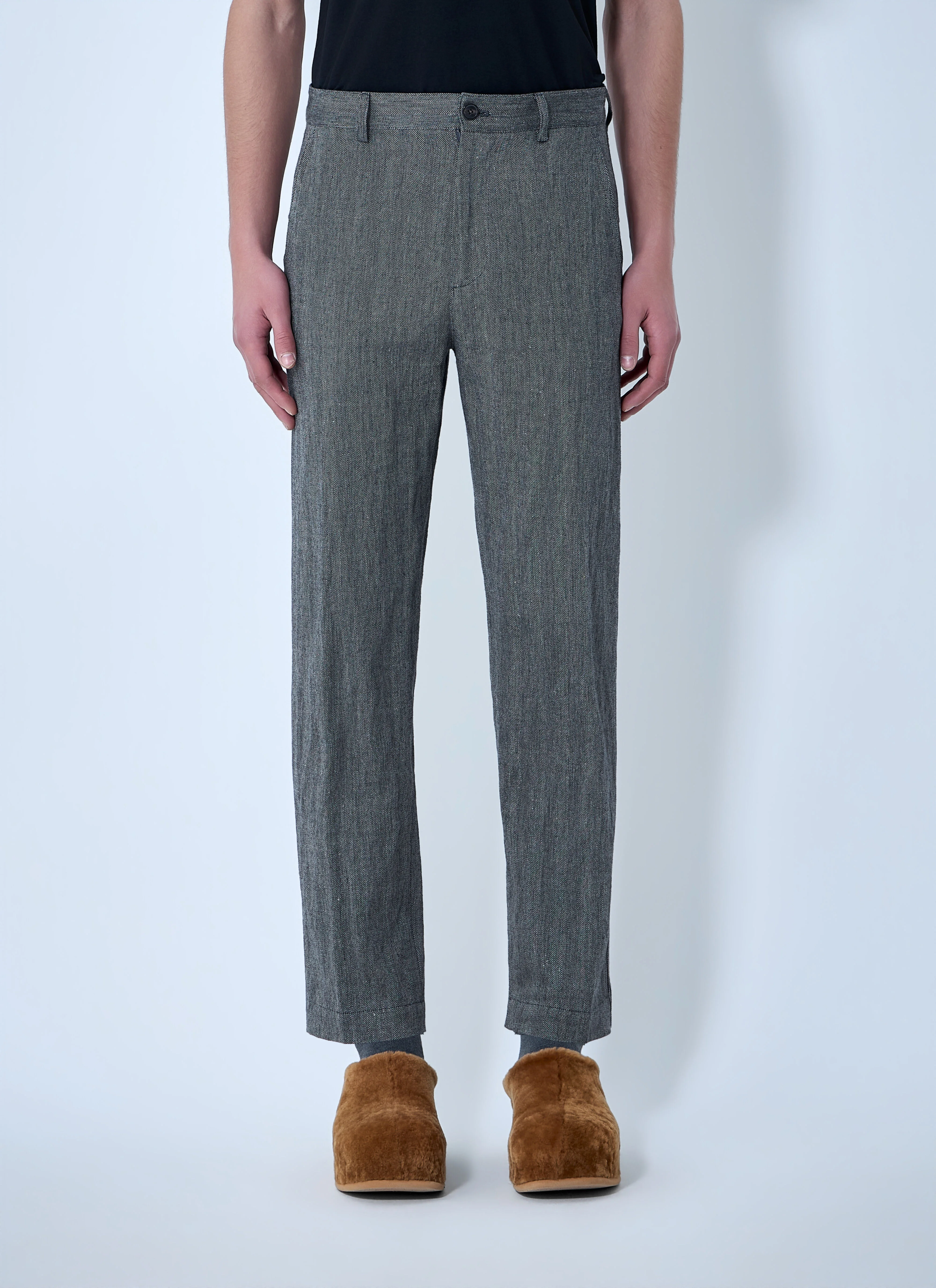 Mid rise tailored trousers in herringbone wool. - Mid rise - Hook-and-eye and zip-fly fastening - Belt loops - Side slip pockets - Rear welt pockets - 57% Cotton 40% Linen 3% Wool - Color: Grey - Code: 261-020946-3131 900