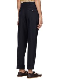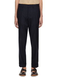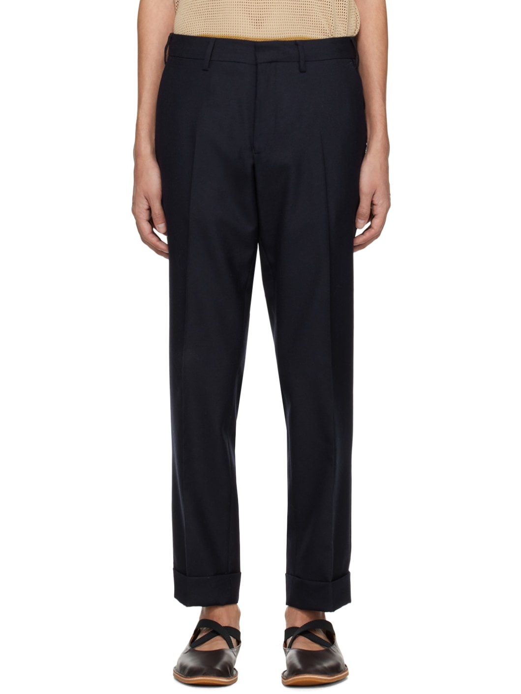 Wool grain de poudre trousers. · Belt loops · Four-pocket stying · Zip-fly · Creased legs · Rolled cuffs · Adjustable button tabs at back waistband Supplier color: Navy