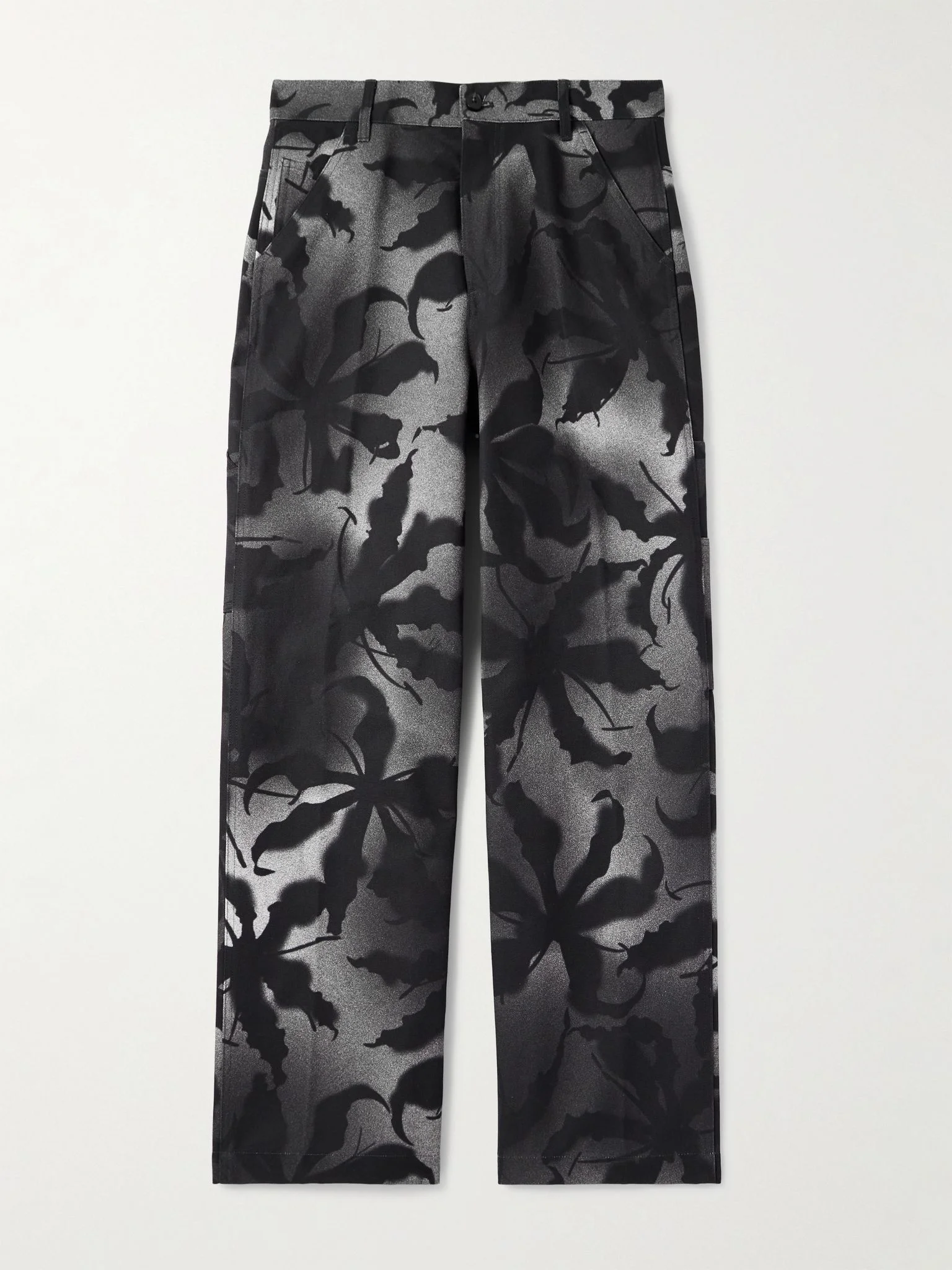 Dries Van Noten's trousers combine artful tailoring with workwear. In a moody floral print that looks spray-painted on, they're cut for a relaxed fit from structured cotton and have utility pockets inspired by carpenter styles. Size & Fit - Fits true to size. Take your normal size - Relaxed-straight leg, high-rise style - Mid-weight, non-stretchy fabric - Model is shown wearing a 30 - Model measures: waist size 30, height 6'2"/ 188cm Details & Care - Black and white cotton - Button fastenings - 100% cotton - Dry clean