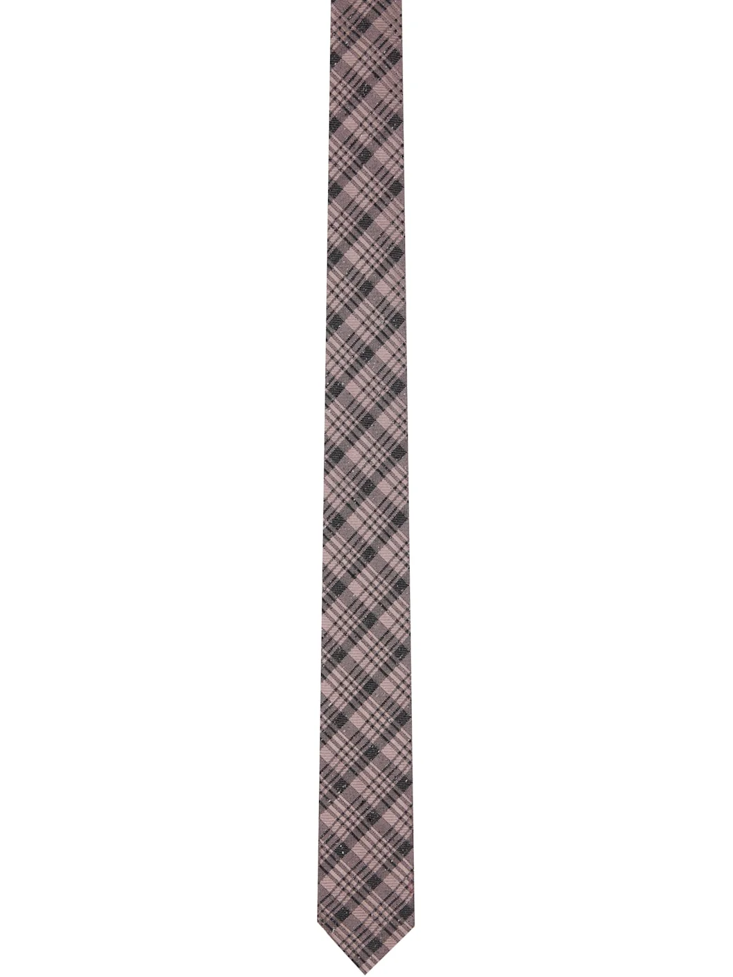 Silk-blend flannel tie. · Check pattern throughout · Keeper loop at back face · W2.25" Supplier color: Blush 78% silk, 22% wool. Made in Italy 252358M158011
