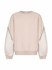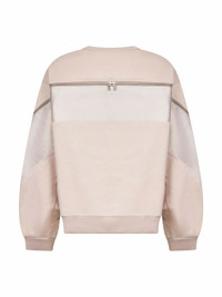 - Ribbed crewneck - Long sleeves, dropped shoulders - Contrasting nylon panels at sleeves and back yoke with silver metal zip detailing - Ribbed cuffs and bottom band - Loose fit - Pink color - 93% cotton, 7% polyester - Made in extra eu Natural (Veg): Cotton93 % Synthetic: Polyester7 % Made in: Turchia Season: A25 021154261112