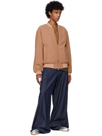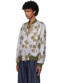 Reversible padded viscose- and acetate-blend gabardine bomber jacket. Reverse in blue viscose- and acetate-blend satin. Floral pattern printed throughout. · Rib-knit stand collar, hem, and cuffs · Two-way zip closure · Welt pockets · Zip pockets at interior Supplier color: Peach 57% viscose, 43% acetate. Made in Hungary 251358M175011