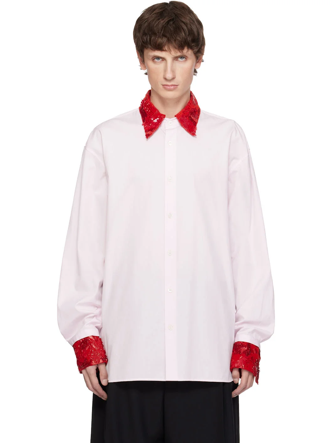 Cotton-blend poplin shirt. Detachable sequinned trim at collar and cuffs. · Spread collar · Button closure · Shirttail hem · Dropped shoulders · Buttoned barrel cuffs Supplier color: Rose 93% cotton, 7% polyamide. Made in India 252358M192051