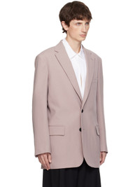 Wool twill blazer. · Notched lapel · Button closure · Welt pocket at chest · Flap pockets at waist · Padded shoulders · Surgeon's cuffs · Central vent at back hem · Welt pocket at interior · Full satin lining Supplier color: Light lilac Body: 100% wool. Lining 1: 100% cupro. Lining 2: 100% viscose. Made in Morocco 252358M195027