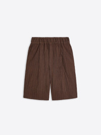 Loose fit wide bermuda shorts with pleats and elasticated waistband. DETAILS - 100% Polyester. Lining: 100% Cotton. - Loose fit. wide single pleat. Side slit pockets and back jetted pockets. Elasticated waistband. - Ref: 251-020953-1504 SIZE AND FIT Model is 188 cm / 74 inches and wears size M.