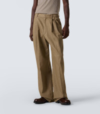 Pleated denim wide-leg pants