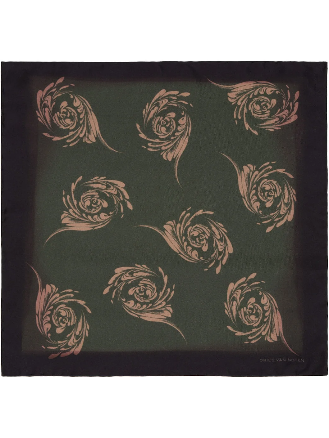 Silk twill pocket square in black and green. · Floral pattern printed throughout · Logo printed at edge · L12" x W12" Supplier color: Dessin b