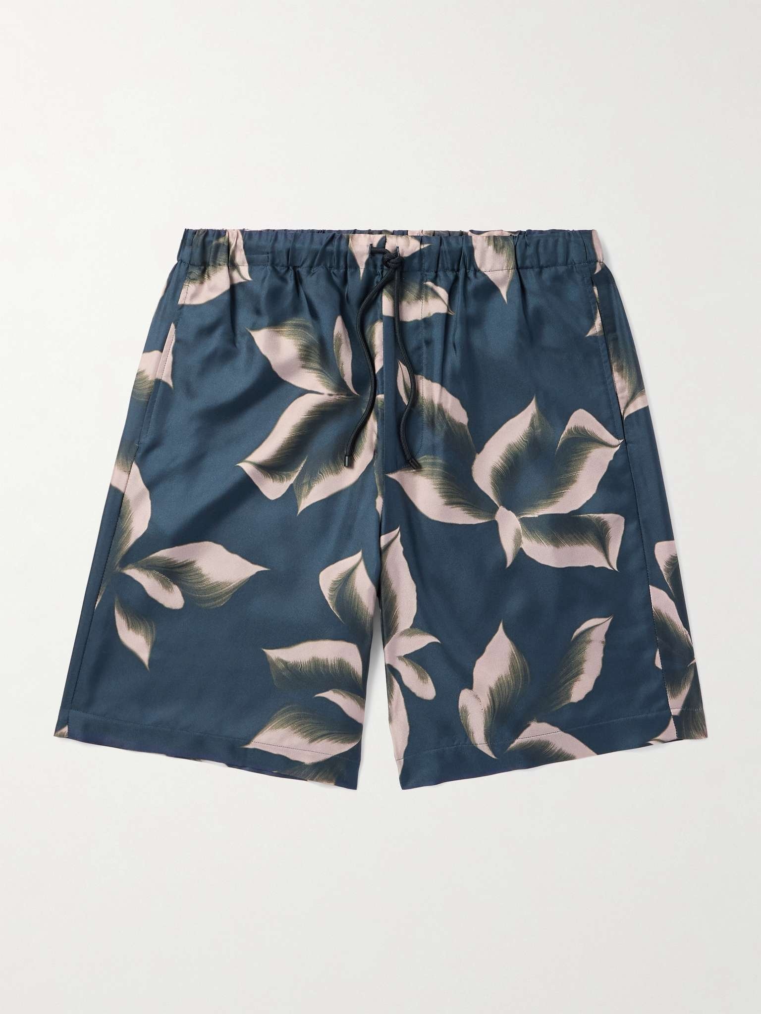 Straight-Leg Printed Silk-Twill Drawstring Shorts