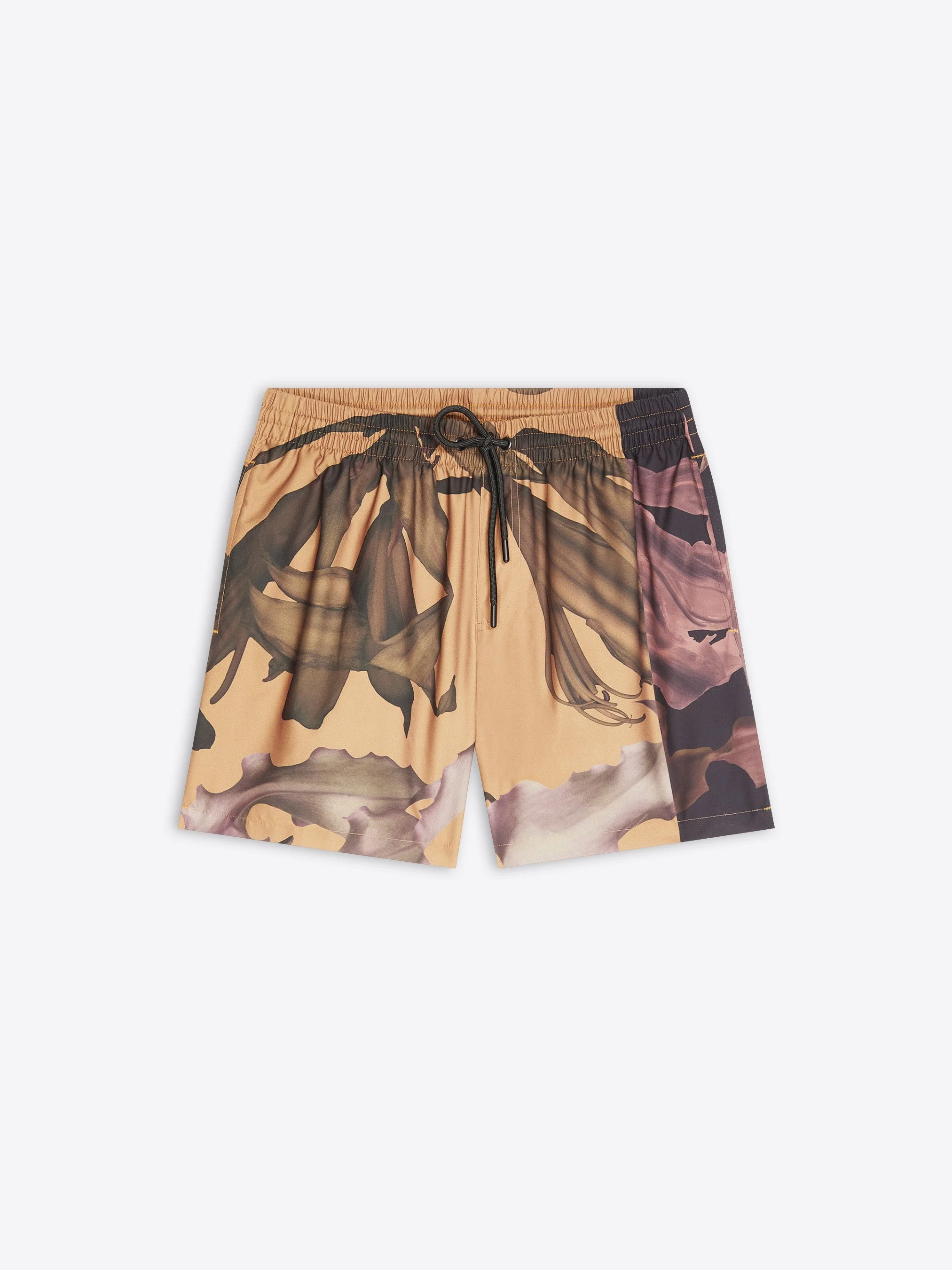 Regular fit swim shorts in nylon, with placed Floral Composition print. DETAILS - 100% Nylon. - Placed Floral Composition print. - Regular fit. Lined. Elasticated waistband with drawstring. - Comes with storage bag. - Ref: 252-022500-2271 SIZE AND FIT Model is 189 cm / 74.5 inches and wears size M.