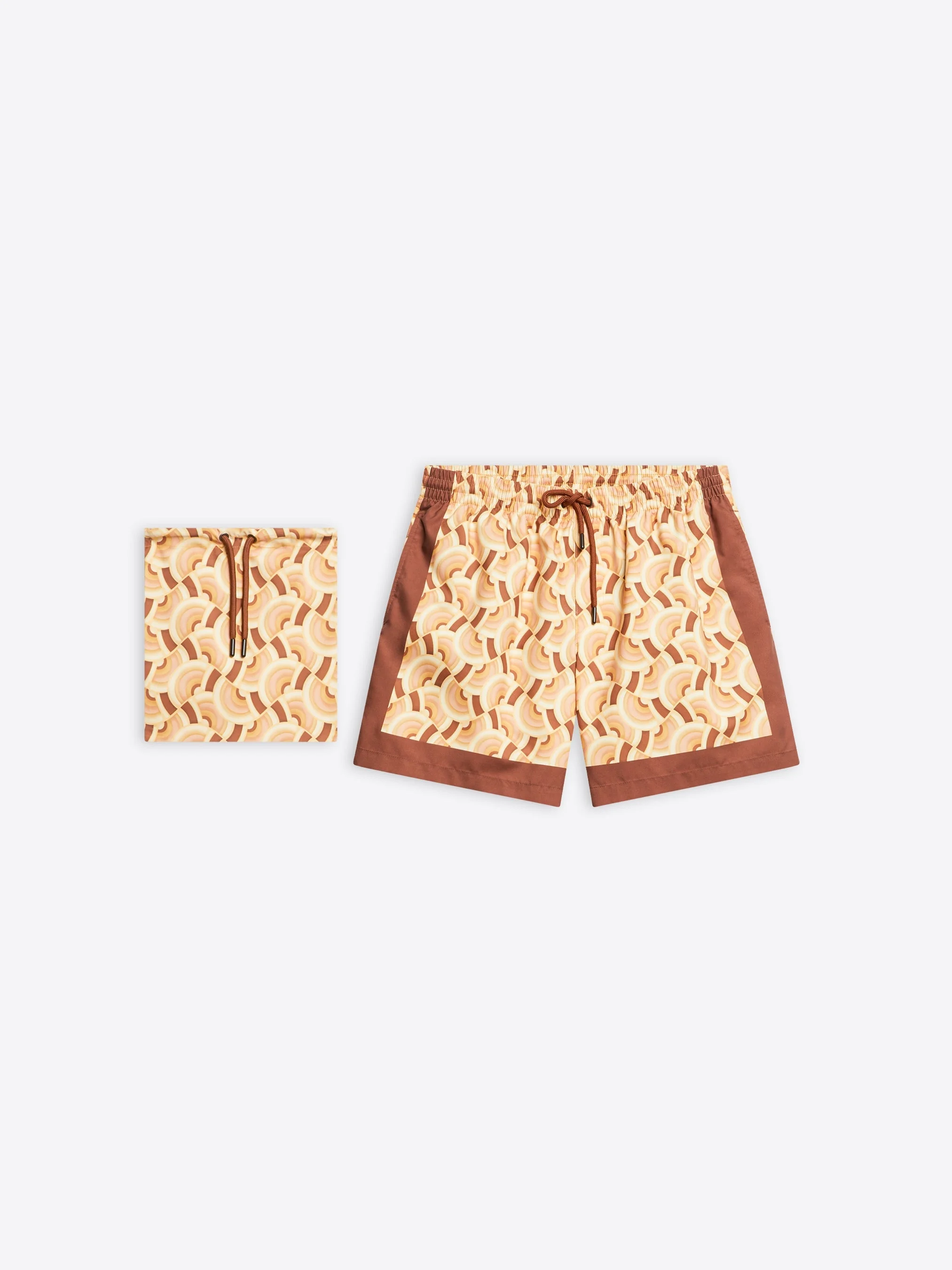 Fitted swimshorts in printed nylon. DETAILS - 100% Nylon. - 'Layered 70's Wallpaper' print. - Slim fit. Elasticated waistband with drawstring. - Comes with storage bag. - Ref: 241-022500-8291 SIZE AND FIT Model is 188 cm / 74 inches and wears size M.