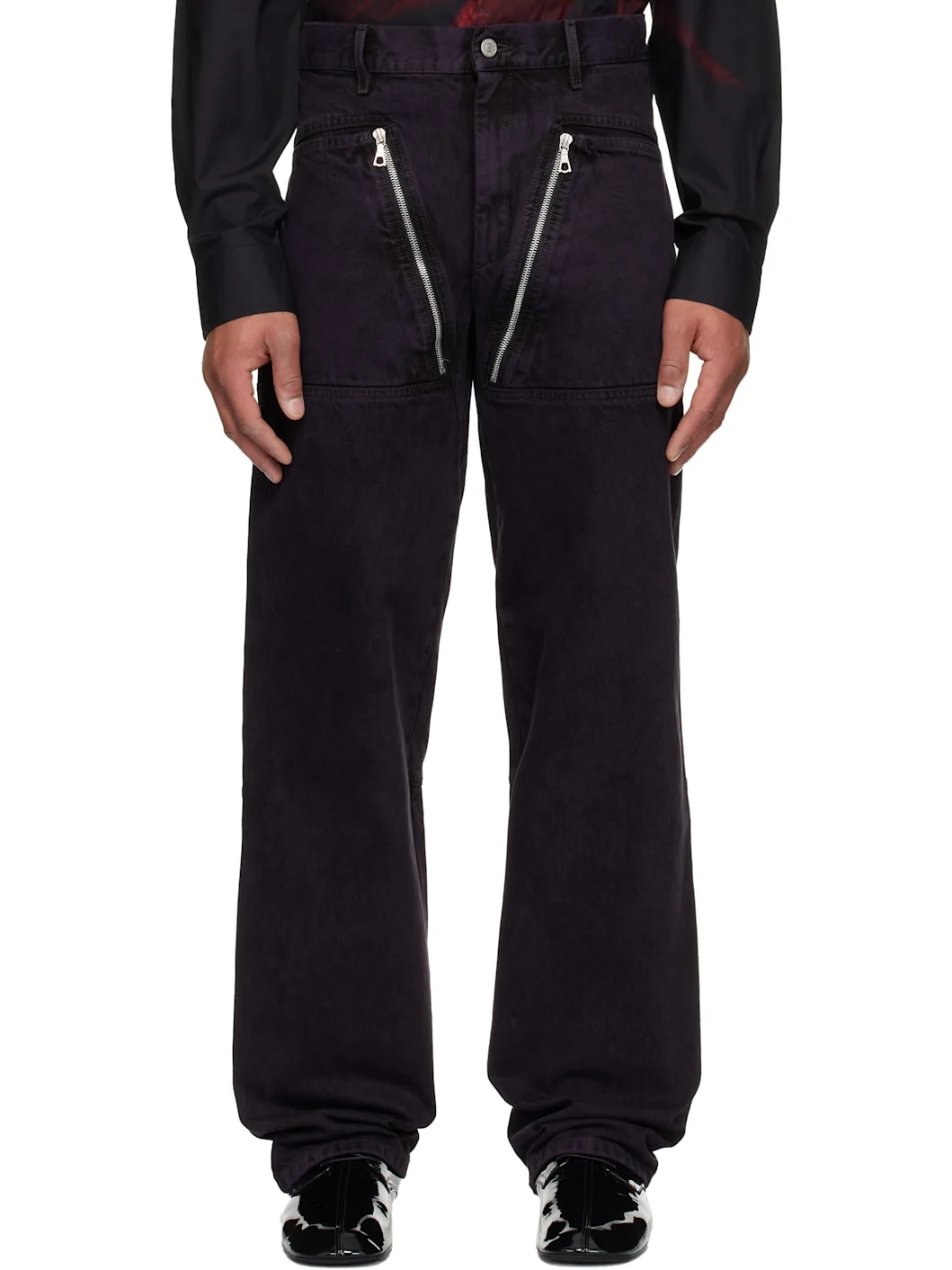 Non-stretch denim jeans. · Paneled construction · Fading throughout · Belt loops · Four-pocket styling · Zip fly · Zip gusset at front pockets · Logo-engraved silver-tone hardware Supplier color: Dark purple 100% cotton. Made in Italy 252358M186007