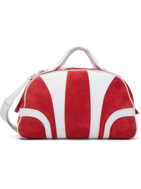 Red & White Suede Duffle Bag