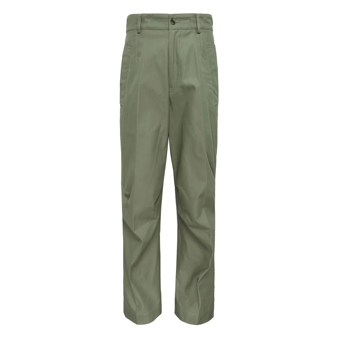 600078514BRN046 / PENCKS/3103/102 - Regular fit silhouette - Pleated construction at knees - Button and zip fly closure - Side entry pockets - Premium cotton twill fabric - Unlined construction - Structured waistband with belt loops Dries Van Noten Regular Fit Pleated Pants deliver contemporary tailoring with relaxed sophistication and architectural detailing. Crafted from premium cotton twill in sage green, featuring structured pleats at the knees and a comfortable regular fit silhouette. The Belgian designer's signature approach to modern menswear creates versatile pants that bridge formal and casual styling.