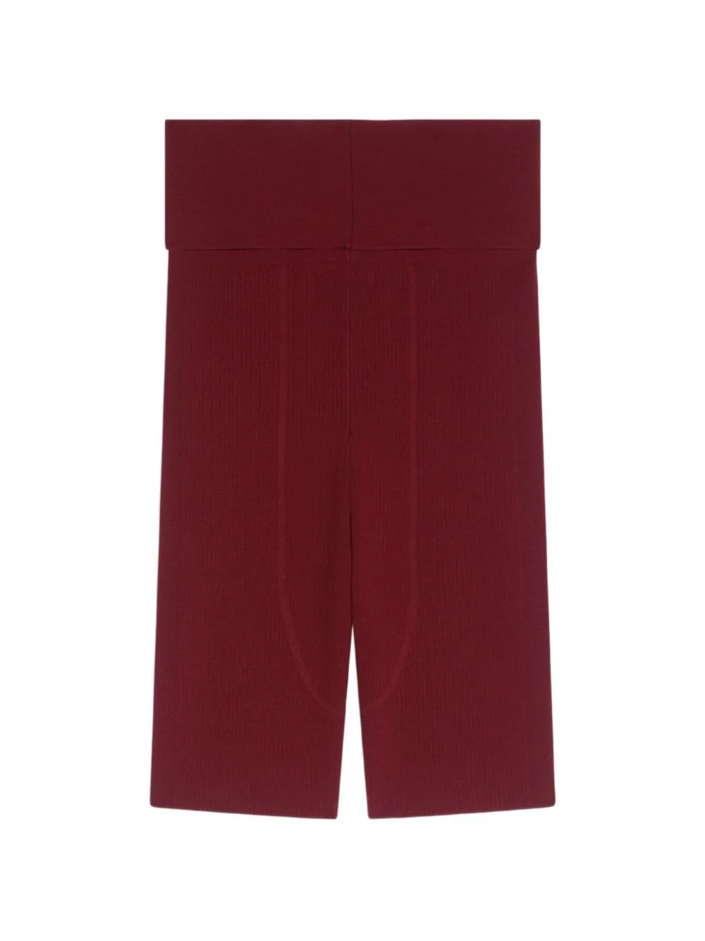 rib knit biker shorts Highlights - Burgundy - Rib knit - Turn-up waistband Imported Composition Viscose 57%, Polyester 25%, Elastane 18% Washing instructions Read Manufacturer Guidelines