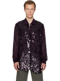 Semi-sheer viscose georgette shirt. · Sequins at front · Spread collar · Concealed button closure · Shirttail hem · Adjustable buttoned barrel cuffs Supplier color: Burgundy 100% viscose. Made in India 252358M192037