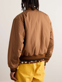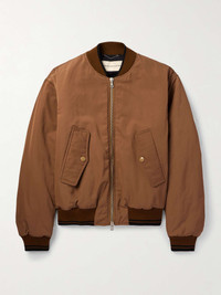 Dries Van Noten's bomber jacket is a streamlined take on the classic aviator style. It's made from shell, countered with ribbed striped, knitted trims to taper the collar, cuffs and hem. Size & Fit - Fits true to size. Take your normal size - Cut for a boxy fit - Dropped shoulder seam - Ribbed hem - Padded, non-stretchy fabric - Model is shown wearing a M - Model measures: chest 38"/ 96cm, height 6'0"/ 183cm Details & Care - Brown shell, brown and black ribbed-knit - Two-way zip fastening - 100% polyester - Dry clean