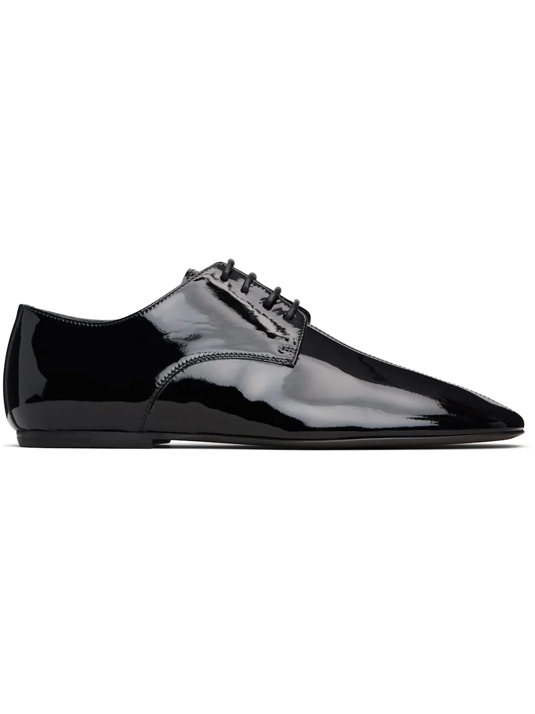 Patent leather derbys. · Square toe · Central seam at vamp · Lace-up closure · Buffed leather lining · Leather sole with rubber injections Supplier color: Black Upper: leather. Sole: leather, rubber. Made in Italy 252358M225000