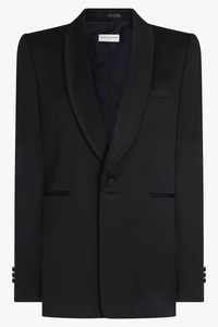 SHINY SINGLE BREASTED TUXEDO JACKET | BLACK